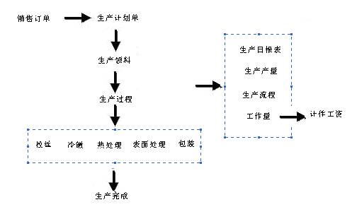 2、 系統(tǒng)主要完成訂單管理、生產(chǎn)任務下達、各工序(拉絲、冷鐓、熱處理、表面處理、包裝等)生產(chǎn)情況(包括流程及庫存)管理