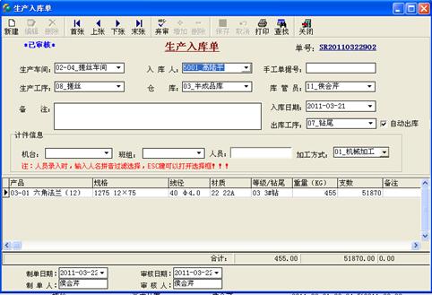 l) 根據(jù)具體業(yè)務流程,可以設置相應提示功能,例如:冷鐓生產(chǎn)量不能大于訂單減去以前生產(chǎn)量。