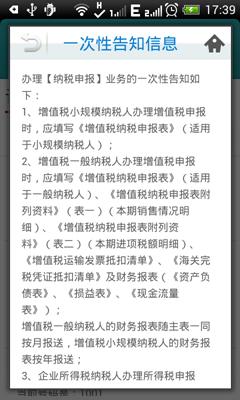 一次性告知涉及納稅人辦稅過程中常見的信息,通過一次性告知的形式,簡單明了的提供給納稅人,辦理某項業務的權利和義務及所要攜帶的資料文件、流程信息。如圖2.30所示。