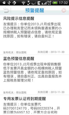 如圖2.17所示,納稅人獲得了“藍色預警信息提醒”信息。