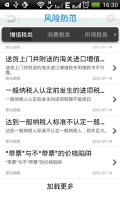 風險防范分為增值稅類、消費稅類、所得稅類、進出口稅類、稅收管理等五大類。為納稅人了解最新的政策,規避不必要的風險,提供了案例及分析。如圖2.32所示。