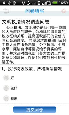 通過該模塊,稅務機關可以發放相關的調查信息,對為納稅人的服務情況進行問卷調查,實現納稅人網上評價通過后臺集中抽取數據,分析納稅服務質效,為改進服務質量提供第一手資料。