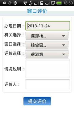 窗口評價實現納稅人對全市21個縣市區的辦稅服務廳窗口的評價,納稅人可以隨時隨地對某一窗口做出評價,以便稅務機關即時了解納稅人的需求,改進工作,更好的為納稅人服務。如圖2.39所示。